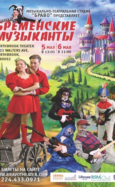 Музыкальная сказка о необыкновенных, очень опасных и веселых приключениях бременских музыкантов: Трубадура, Кота, Собаки, Петуха и Осла. Эта постановка не имеет возрастных ограничений, и зрители разных поколений, несомненно, получат удовольствие от её просмотра.