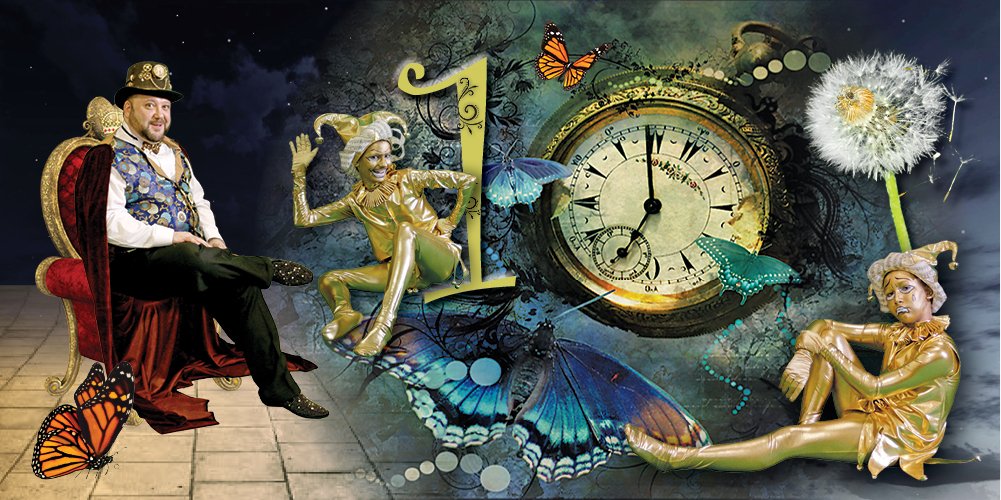 Этот необычный, красочный и по настоящему волшебный спектакль, специально написан по случаю ДЕСЯТИЛЕТИЯ нашей студии! Это увлекательная история, о незабываемых приключениях двух забавных масок - Комедии и Трагедии. Совершенно неожиданно ломаются Волшебные Часы и отбрасывают масок на десять лет назад, в самое начало творческого пути студии. Задача масок, отыскать Волшебника-Часовщика, который сумеет завести часы, что бы время вновь пошло вперёд.