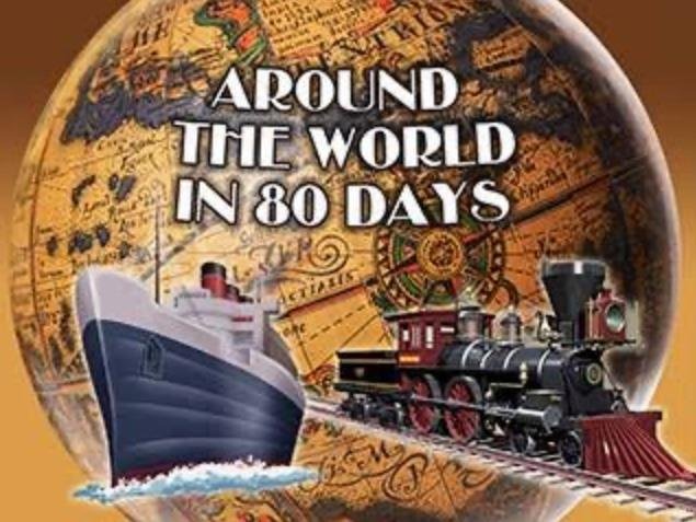 Played in English. The London gentleman Phileas Fogg made a bet with members of the aristocratic club that he would be able to go around the world in 80 days. Will they be on time? Who will win the bet?