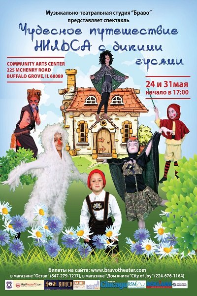 Сказка "Чудесное путешествие Нильса с дикими гусями" - произведение Сельмы Лагерлеф, шведской писательницы, первой женщины, получившей Нобелевскую премию по литературе. Спектакль «Чудесное путешествие Нильса с дикими гусями» рассказывает историю о мальчике-хулигане, жизнь которого перевернулась с ног на голову после встречи с могущественным волшебником. Чтобы получить шанс снять заклятье и вернуться к своей обычной жизни, Нильсу пришлось отправиться в долгое и опасное путешествие со стаей диких гусей.